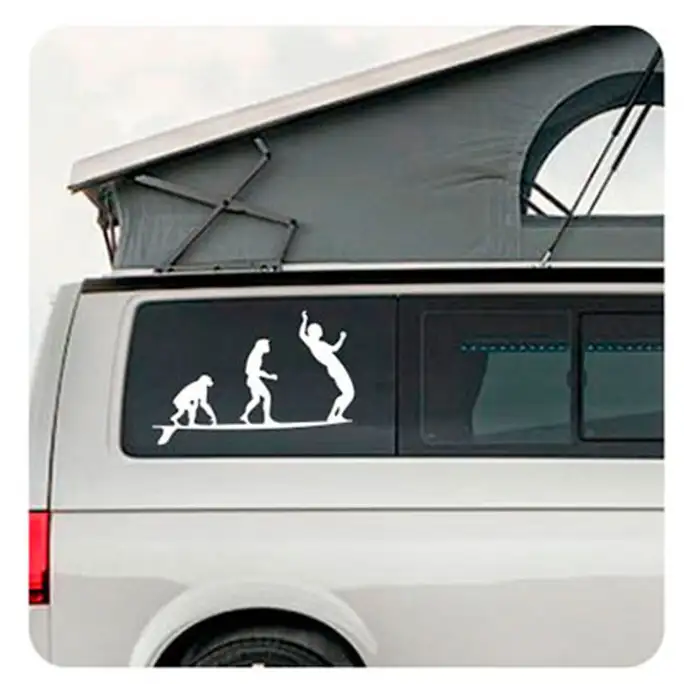 ES HÄLT DEM WETTER PERFEKT STAND UND IST SOGAR ZUM SEGELN GEEIGNET. KLEBEN SIE ES, WO IMMER SIE WOLLEN, AN EIN TELEFON, AN EINE WAND, EINEN KLEIDERSCHRANK, DEN KÜHLSCHRANK, DAS MOTORRAD, DEN TISCH, ES HÄLT DEN HÄRTESTEN BEDINGUNGEN STAND. WIR BIETEN IHNEN DIE GRÖSSTE SAMMLUNG AN AUFKLEBERN FÜR WOHNMOBILE, SURFER, VOLKSWAGEN, FREAKS, KUSTOM, 4X4, MOTORRÄDER UND TIERE.