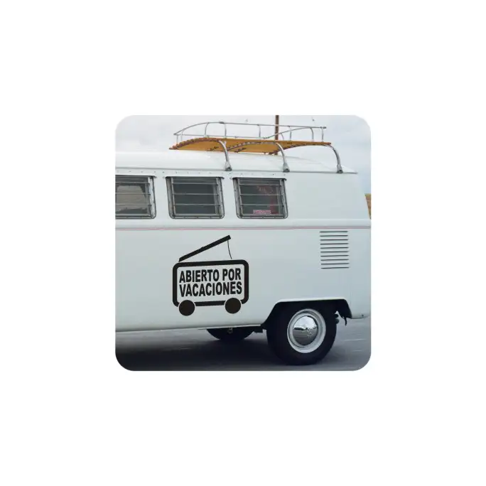 IT WITHSTANDS THE WEATHER PERFECTLY, SUITABLE EVEN FOR SAILING. STICK IT WHEREVER YOU WANT, A PHONE, A WALL, A WARDROBE, THE FRIDGE, THE MOTORCYCLE, THE TABLE, IT WILL WITHSTAND THE HARSHEST CONDITIONS. WE OFFER YOU THE LARGEST COLLECTION OF STICKERS FOR CAMPER VANS, SURFERS, VOLKSWAGEN, FREAKS, KUSTOM, 4X4, MOTORBIKES AND ANIMALS.